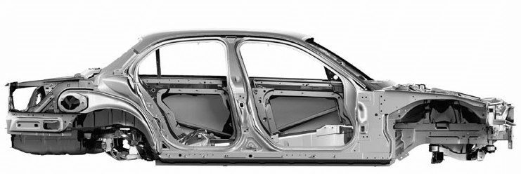 Classical styling and conservative looks belie the complexity of construction beneath; these are complex bodyshells utilising advanced construction techniques. The aluminium body relies on a system called riv-bonding which uses adhesive and self piercing rivets to hold it together. Bonded aluminium has been popular in the aircraft industry for decades because of its light weight but it came later to the auto industry. Manufacturers had used it but this was the first mass market car to feature it extensively. The process of assembling the shell involves applying an adhesive before clamping the parts together and heat curing it. Self piercing rivets require no pre drilling which saves time in manufacturing and these are used to further strengthen the joints. There are also a number of bolts and spot welds used where these methods are inappropriate. All together these techniques made the bodyshell 40% lighter and 50% stiffer than its forebear.